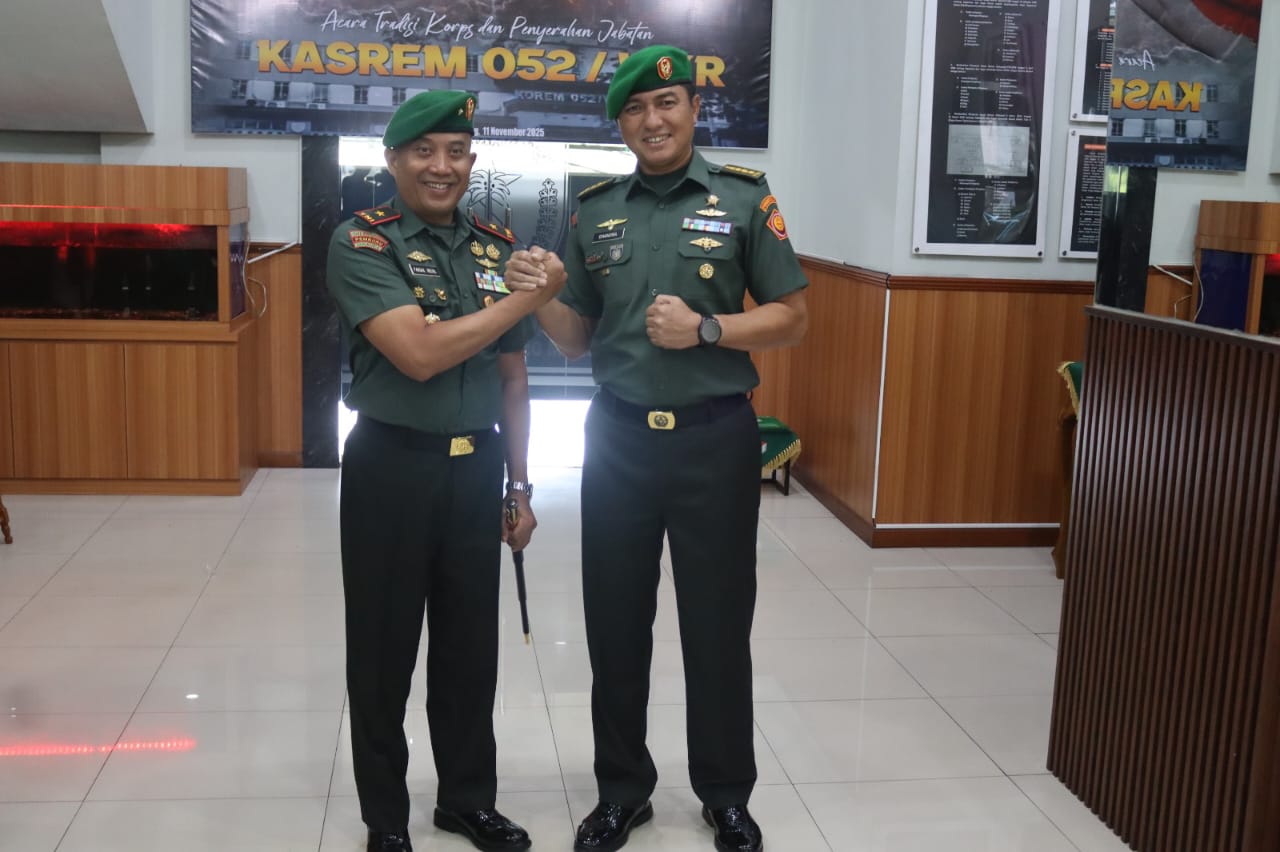 Jabatan Kasrem 052/Wkr secara resmi diserahkan dari Kolonel Czi Chandra Adibrata kepada Danrem 052/Wkr Brigjen TNI Faizal Rizal, S.I.P., dan untuk sementara jabatan Kasrem 052/Wkr masih kosong. Selanjutnya, Kolonel Czi Chandra Adibrata akan menempati jabatan baru sebagai Kepala Pusat Pembinaan Mental (Kapusbintal) TNI di Mabes TNI.