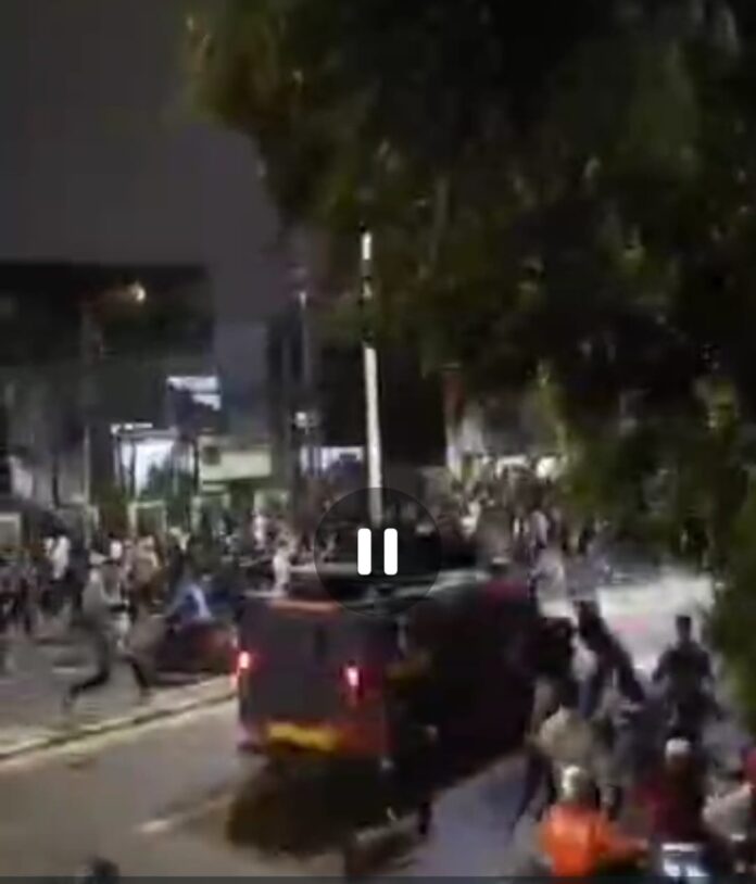 Massa yang memenuhi jalan tersebut seketika membubarkan diri dan berhamburan ke segala arah. Tak lama terjadi insiden mengerikan yang terekam dalam video warga.
