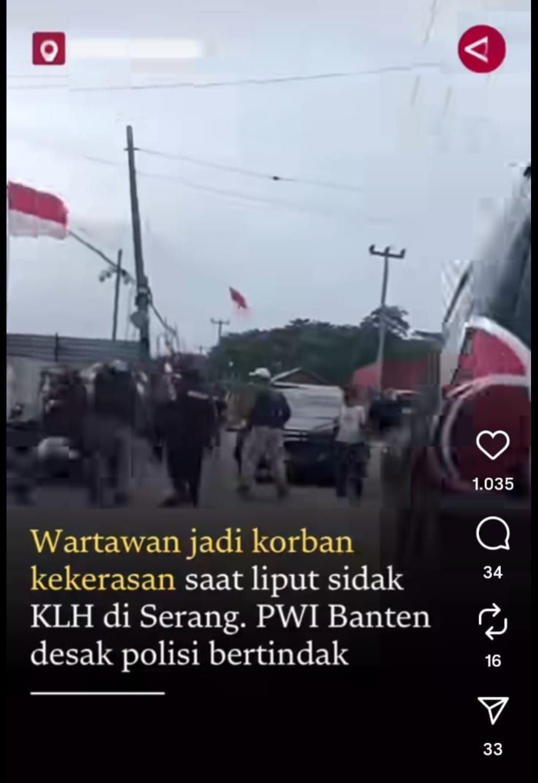Serang (Brita7.online) – Kekerasan terhadap jurnalis kembali terjadi di Banten. Saat meliput inspeksi mendadak (sidak) Kementerian Lingkungan Hidup (KLH) di kawasan PT Genesis Regeneration Smelting, Kecamatan Jawilan, Kabupaten Serang, pada Kamis (21/8/2025), Sebanyak delapan wartawan menjadi korban intimidasi dan pengeroyokan.